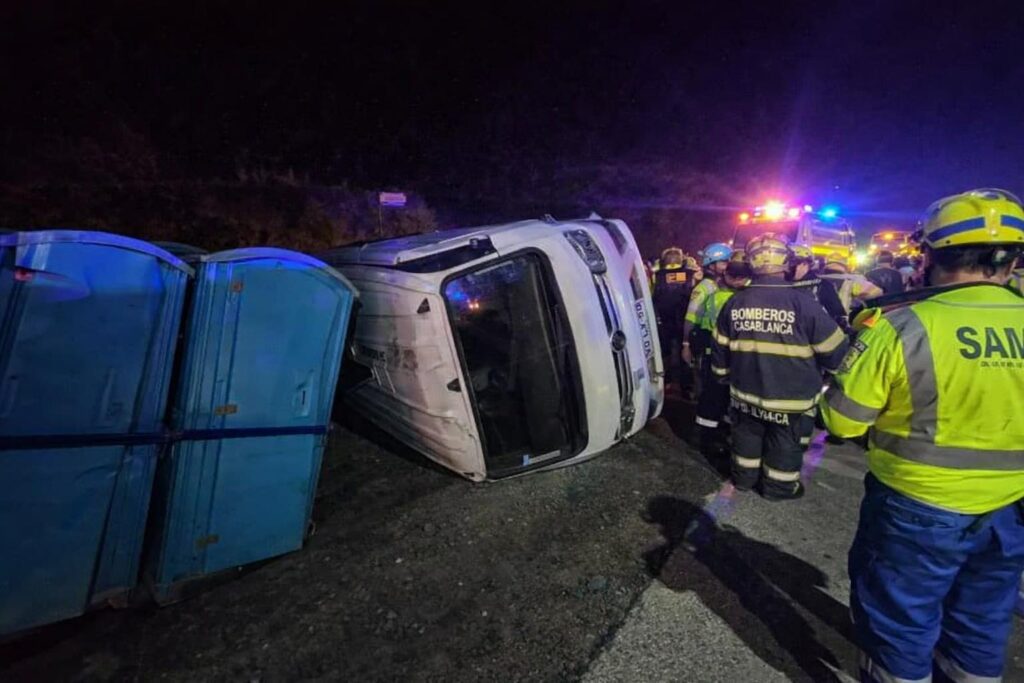 Durante la noche de este lunes, un camión protagonizó un accidente en la Ruta F-90, específicamente en las cercanías del enlace Maitenes, en la comuna de Casablanca.