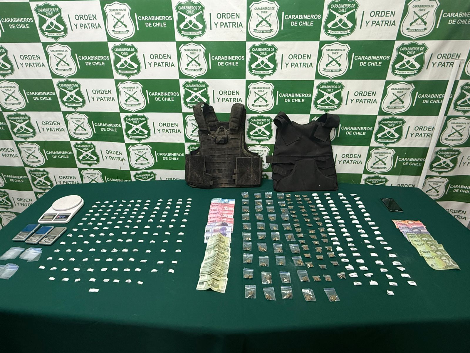 Durante los allanamientos se incautaron distintas sustancias ilícitas, entre ellas cocaína, pasta base y marihuana, junto a dinero en efectivo, balanzas digitales y otros elementos utilizados para la dosificación y venta de drogas. También se encontraron dos chalecos antitrauma y otras especies vinculadas a la actividad delictual.