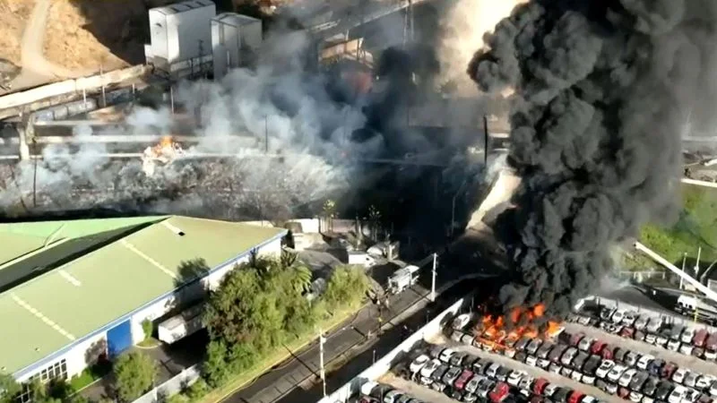 El impacto generó un incendio de grandes proporciones que se propagó rápido, afectando estacionamientos y sectores industriales adyacentes, y levantó una densa columna de humo visible desde distintos puntos de la capital.
