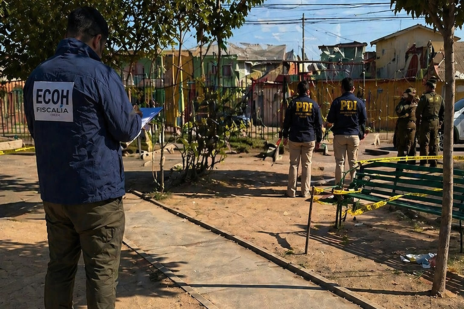 El ataque ocurrió en la plaza de Villa Los Copihues, lugar hasta donde llegaron equipos policiales para iniciar las primeras diligencias tras la denuncia del hecho.