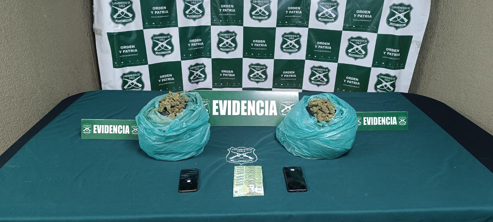 Además de la droga, Carabineros incautó dos teléfonos celulares, dinero en efectivo y el vehículo utilizado para el traslado, elementos que serán incorporados a la investigación.