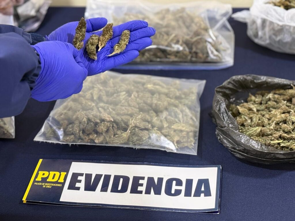 En el operativo, la PDI logró incautar 1.563,97 gramos de Cannabis Sativa avaluada en el mercado informal en más de siete millones y medio de pesos, lo que equivale a aproximadamente a 1.500 dosis de estupefacientes que fueron retiradas de circulación, además, de municiones de escopeta, teléfonos celulares y elementos para la dosificación de la droga.